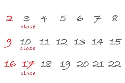 6月のお休み 5日(月) 12日(月) 19日(月) 26日(月) 以上が6月のお休みになります また、6月はイベントやワークショップがあります! 通常営業がお休みの日もございますのでお...